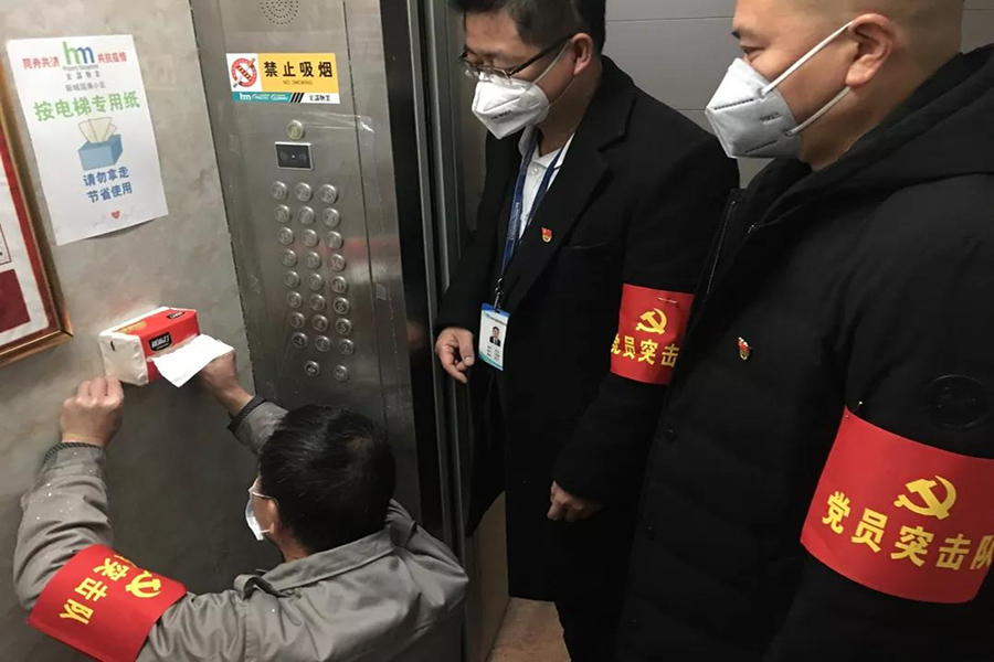 宏謀物業(yè)工程部黨員周成積極響應(yīng)公司黨支部的號(hào)召,帶領(lǐng)工程部全員提前返崗,為小區(qū)所有入戶門對(duì)講系統(tǒng)及電梯按鍵穿上每天一換的保鮮膜“保護(hù)外套”、為每臺(tái)電梯內(nèi)裝上業(yè)主按鍵時(shí)使用的抽紙等,最大程度的做好疫情防控工作,給業(yè)主創(chuàng)造一個(gè)健康、 安心的居家環(huán)境。