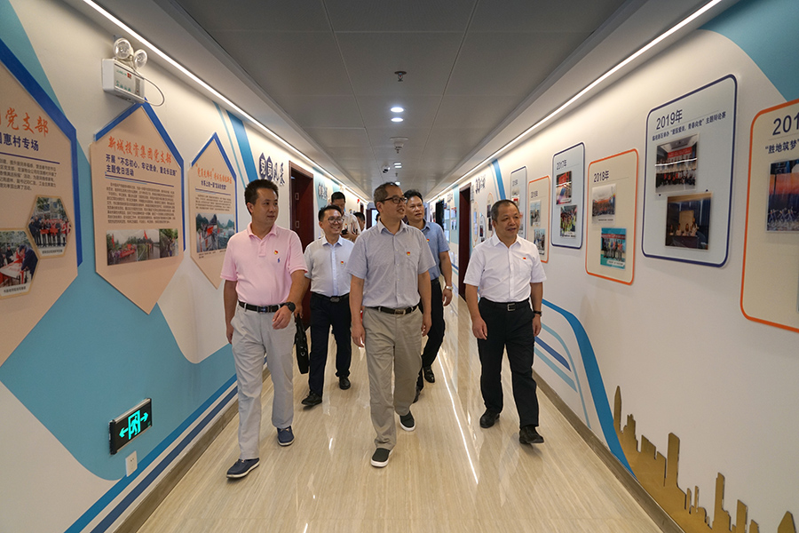 參觀結(jié)束后,周道林匯報了集團公司黨組織通過抓好疫情防控、復(fù)工復(fù)產(chǎn)、黨建帶群建、駐村扶貧、志愿服務(wù)、黨員教育培訓(xùn)、巡察意見整改、“黨旗映勝地”黨建品牌的打造、黨建設(shè)促發(fā)展等方面的工作,實現(xiàn)了黨對集團各項工作的全面領(lǐng)導(dǎo),黨建引領(lǐng)作用發(fā)揮明顯。 在新區(qū)工委的指導(dǎo)下,集團黨組織從2018年至今醞釀和打造了“黨旗映勝地”國企黨建品牌、2019年又配套提出了“11321”黨建推項目工作法,黨建引領(lǐng)中心工作、黨建帶群建成果得到市委組織部、市國資委的認(rèn)可,并因此被選為“三個現(xiàn)場觀摩單位、四個交流發(fā)言單位之一”,參加了2020年6月16日“全市貫徹國有企業(yè)基層黨組織工作條例暨黨支部標(biāo)準(zhǔn)化規(guī)范化建設(shè)現(xiàn)場推進(jìn)會”。在現(xiàn)場會上,在新區(qū)工委領(lǐng)導(dǎo)下的集團公司黨建工作得到了市委組織部、市國資委和兄弟單位領(lǐng)導(dǎo)的肯定和好評。