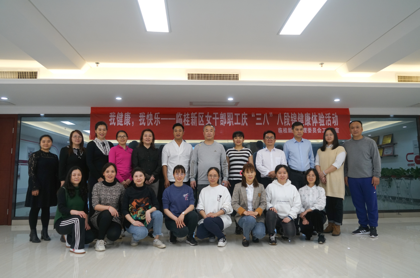 3月19日,在公司辦公大樓職工之家,工會組織職工積極報名參加了臨桂新區(qū)管委工會舉辦的“我健康,我快樂”八段錦健康體驗活動。在老師耐心地講解之下,大家領(lǐng)略到八段錦傳統(tǒng)文化精髓的獨特魅力。通過此次體驗活動,職工們了解了“八段錦”的健身、養(yǎng)生功用,表示今后要增強健身意識,工作之余抽出時間堅持練習,在健身中尋求快樂,在工作中收獲幸福。