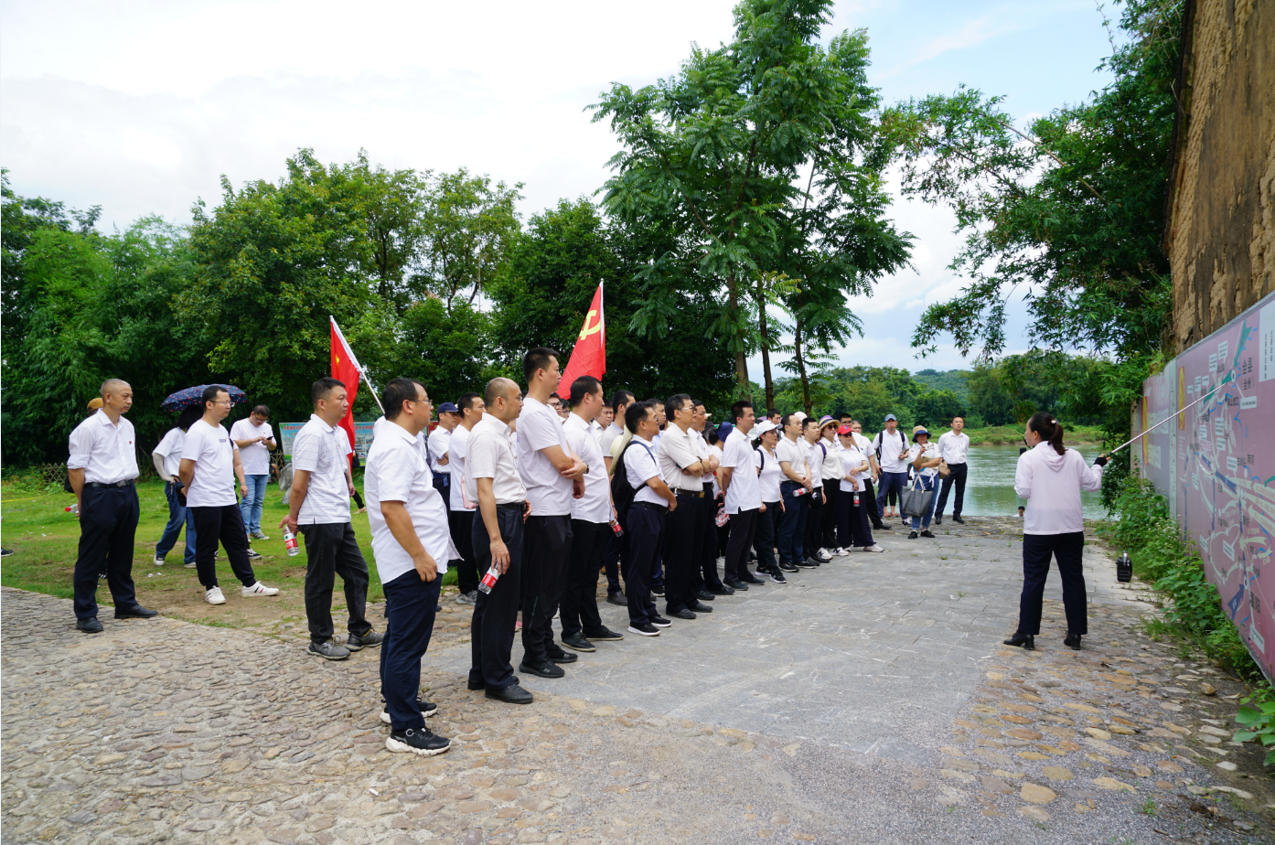 在湘江戰(zhàn)役渡江舊址,全體黨員上了一堂現(xiàn)場教學(xué)課。講解員還原湘江戰(zhàn)役各個渡口場景,黨員們被帶回到了那個戰(zhàn)火紛飛的年代,看見了被鮮血染紅的湘江,感受到革命先輩為理想前赴后繼,永不言棄的長征精神。