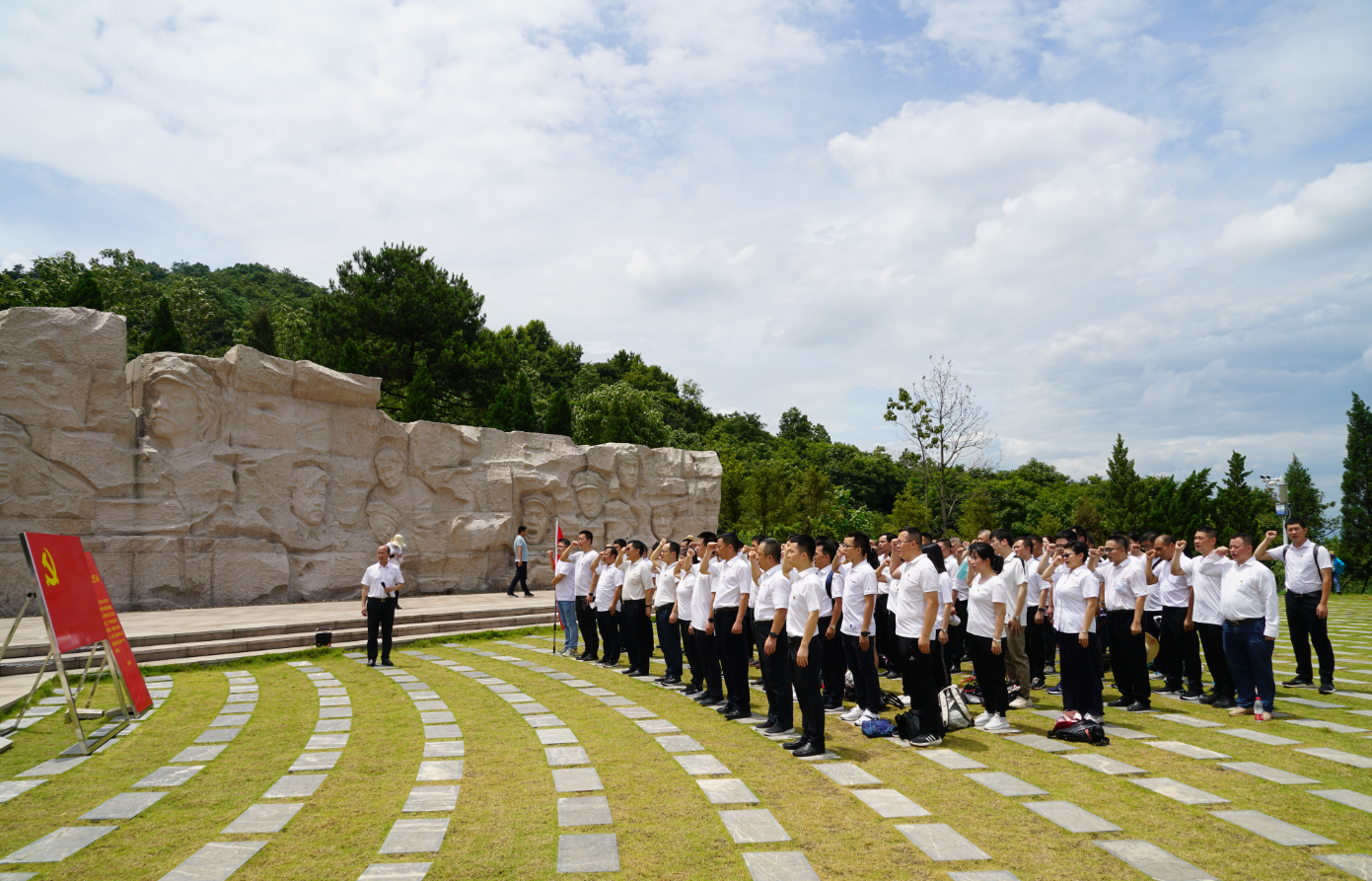 “一山一石一忠魂,一草一木一豐碑”。在紅軍長征湘江戰(zhàn)役紀念園憑吊廣場,“紅軍魂”雕塑巍然聳立,全體黨員向在湘江戰(zhàn)役中英勇犧牲的紅軍烈士默哀,敬獻花籃并三鞠躬,表達對革命烈士的深切緬懷和無限敬仰。面對鮮艷的中國共產(chǎn)黨黨旗,大家莊嚴列隊,重溫入黨誓詞,用錚錚誓言表達矢志不渝守初心、奮發(fā)有為擔(dān)使命的堅定信念。