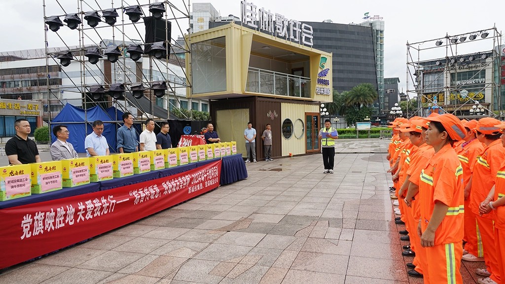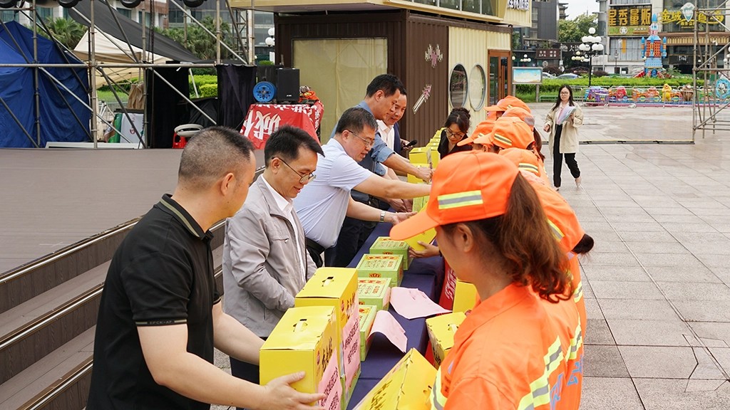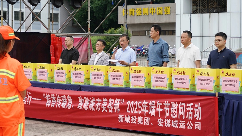 為深入踐行習近平總書記“以人民為中心”“勞動最光榮”的指導(dǎo)思想,切實把組織關(guān)懷送到基層勞動者心坎上,進一步提升環(huán)衛(wèi)職工隊伍的職業(yè)認同感和幸福感,2025年5月29日端午節(jié)前夕,新城投集團聯(lián)合宏謀城運公司在秀峰區(qū)中心廣場舉辦“粽香傳暖意,致敬城市美容師”端午節(jié)慰問活動。此次活動得到市城管委,秀峰區(qū)政府、城管局、環(huán)衛(wèi)站的大力支持與指導(dǎo)。市城管委黨組成員、副主任蔣毅出席活動。受新城投集團黨委書記、董事長朱毅委托,黨委副書記、紀委書記、工會主席譚力源代表集團黨委、領(lǐng)導(dǎo)班子及全體職工,向奮戰(zhàn)在環(huán)衛(wèi)一線的干部職工致以節(jié)日問候。