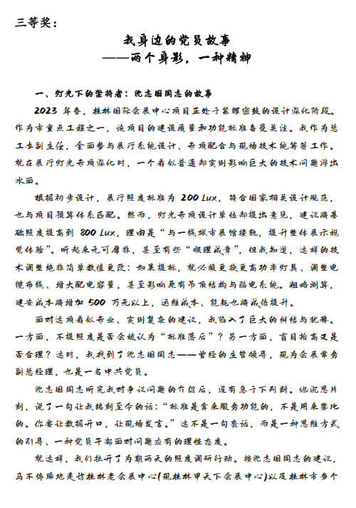 為確保比賽的專業(yè)性與公正性,集團(tuán)黨委聯(lián)合第三黨支部委員及群眾代表組成評(píng)審小組,從主題性、感染力、文字表達(dá)、創(chuàng)新性四個(gè)維度對(duì)作品進(jìn)行綜合評(píng)分。經(jīng)過層層篩選,最終評(píng)選出一等獎(jiǎng)2名、二等獎(jiǎng)1名、三等獎(jiǎng)3名、優(yōu)秀獎(jiǎng)5名。獲獎(jiǎng)作品既有對(duì)黨員先進(jìn)事跡的深度刻畫,也有對(duì)黨性精神的深刻詮釋,充分反映了參賽者的真情實(shí)感與創(chuàng)作水平。