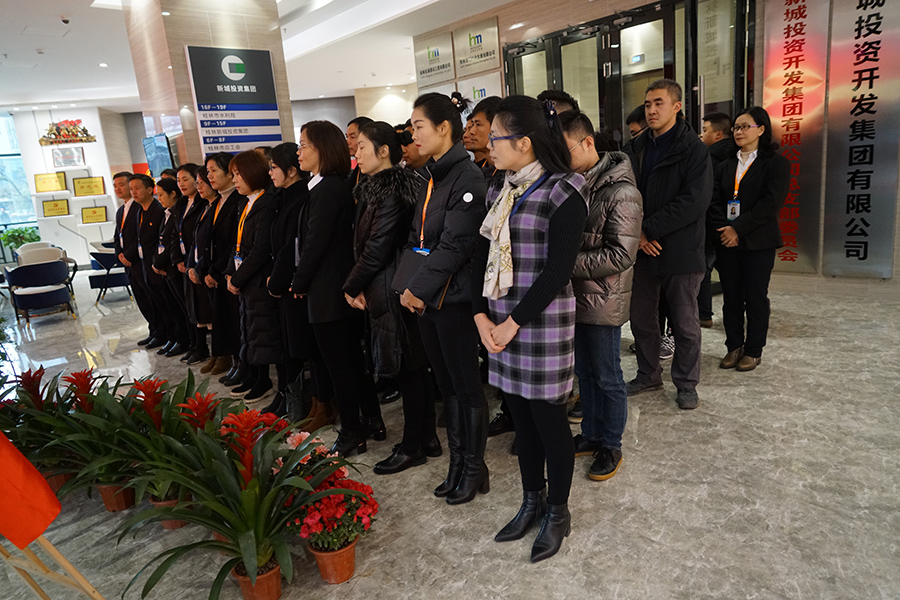 12月24日上午,在新城投資集團一樓舉行了桂林市宏謀會展投資有限公司(以下簡稱宏謀會展公司)揭牌成立。臨桂新區(qū)工委委員、管委會副主任文杰,新城投資集團黨支部書記、董事長周道林揭牌并致辭?;顒佑尚鲁峭顿Y集團副總經(jīng)理鄭善華主持,集團主管以上干部職工參加。