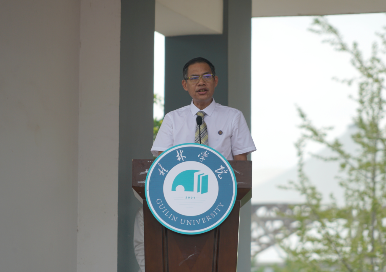“云中的神啊,霧中的仙,神姿仙態(tài)桂林的山!情一樣深啊,夢一樣美,如情似夢漓江的水!水幾重啊,山幾重?水繞山環(huán)桂林城……”,周道林以中國當(dāng)代詩人賀敬之的《桂林山水歌》為開場白,向從五湖四海來到桂林學(xué)院的莘莘學(xué)子們表達(dá)最誠摯的問候與歡迎。