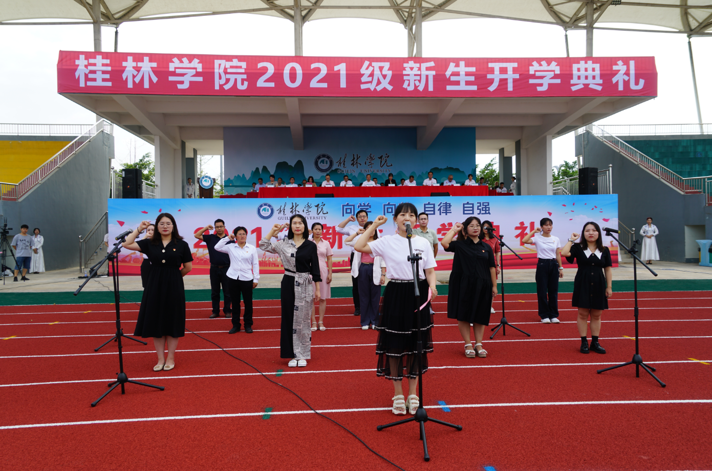 典禮最后,全體師生奏唱校歌《造就人才的殿堂(桂林學(xué)院之歌)》,激情高昂的歌聲將開學(xué)典禮推向高潮。全體師生在歌聲中弘壯志、鑄夢想,共同祝愿我們偉大的祖國繁榮昌盛,學(xué)校事業(yè)發(fā)展蒸蒸日上!