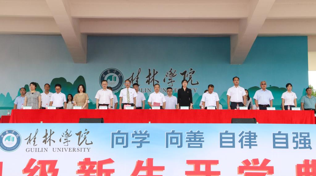 9月17日上午,桂林學(xué)院2021級新生開學(xué)典禮在學(xué)校田徑場舉行。2021級來自全國各地的3160名新生和新生親友通過現(xiàn)場與視頻直播相結(jié)合的形式,共同參加和觀看了開學(xué)典禮。桂林學(xué)院董事長周道林,桂林學(xué)院校長楊樹喆以及學(xué)校董事、監(jiān)事、校領(lǐng)導(dǎo)出席典禮。各二級學(xué)院、職能教輔部門主要負(fù)責(zé)人,各黨總支書記、副書記,全體新生輔導(dǎo)員,教師代表,校友代表參加典禮。開學(xué)典禮由校黨委書記唐文紅主持。