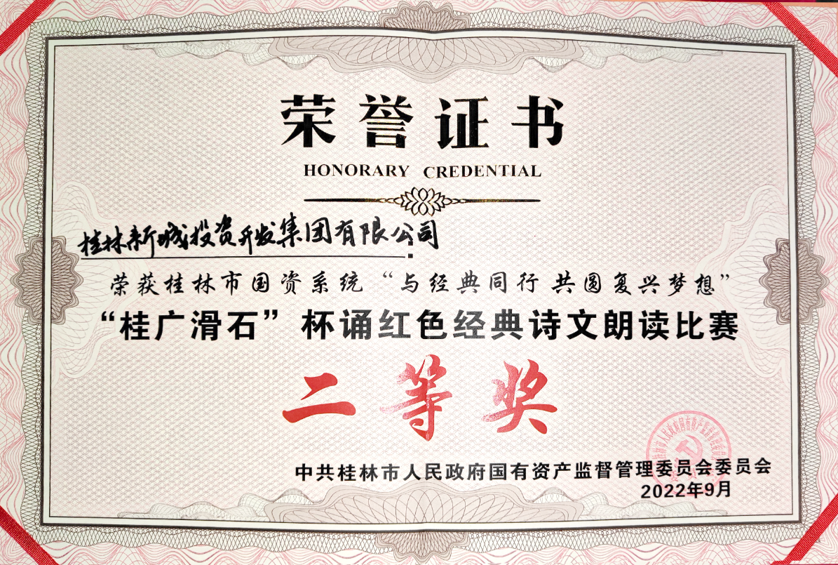 為彰顯傳統(tǒng)文化的獨(dú)特魅力,傳承千年優(yōu)良經(jīng)典文化與紅色基因,2022年9月23日,由桂林市人民政府國(guó)有資產(chǎn)監(jiān)督管理委員會(huì)主辦的“強(qiáng)國(guó)復(fù)興有我”主題教育——“與經(jīng)典同行,共圓復(fù)興夢(mèng)想”誦紅色經(jīng)典詩(shī)文朗讀比賽(決賽)在一院兩館小劇場(chǎng)舉行。本次比賽評(píng)出一等獎(jiǎng)2個(gè),二等獎(jiǎng)3個(gè),三等獎(jiǎng)4個(gè)。新城投集團(tuán)選送的詩(shī)朗誦情景劇《不朽的軍魂》憑借真摯的情感,轉(zhuǎn)折起伏的情節(jié),從19支決賽隊(duì)伍中脫穎而出,獲得二等獎(jiǎng)的好成績(jī)。桂林市國(guó)資委黨委書記、主任裴軍等出席活動(dòng)。