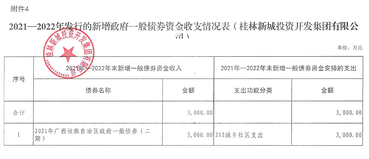 桂林新城投資開發(fā)集團有限公司關(guān)于2020年-2021年發(fā)行的新增政府債券使用和管理情況